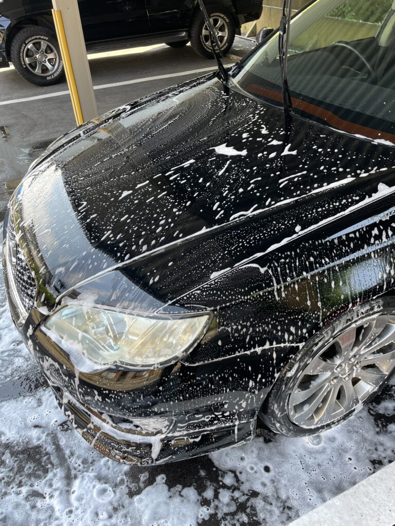 私の車は2006年製レガシィツーリングワゴンの黒です。現在はアパートに青空駐車しており、月に一度は実家で洗車か、洗車機に投入しています。