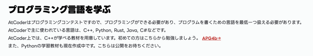 AtCorderのサイトの「はじめかた」からC++を学ぶことができます。