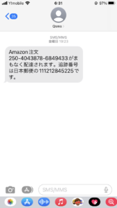 数日たつと、SMSにてアマゾンの商品発送の連絡がありました。通常Amazonですとメールでの発送通知のはずですので、少し疑問に思いました。