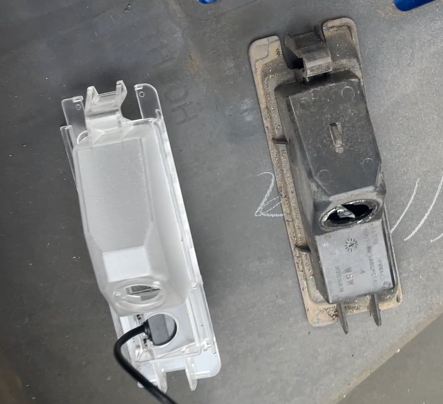K13マーチは、ナンバー灯の部分に取付するには「リアバンパーを取り外す」必要があります。