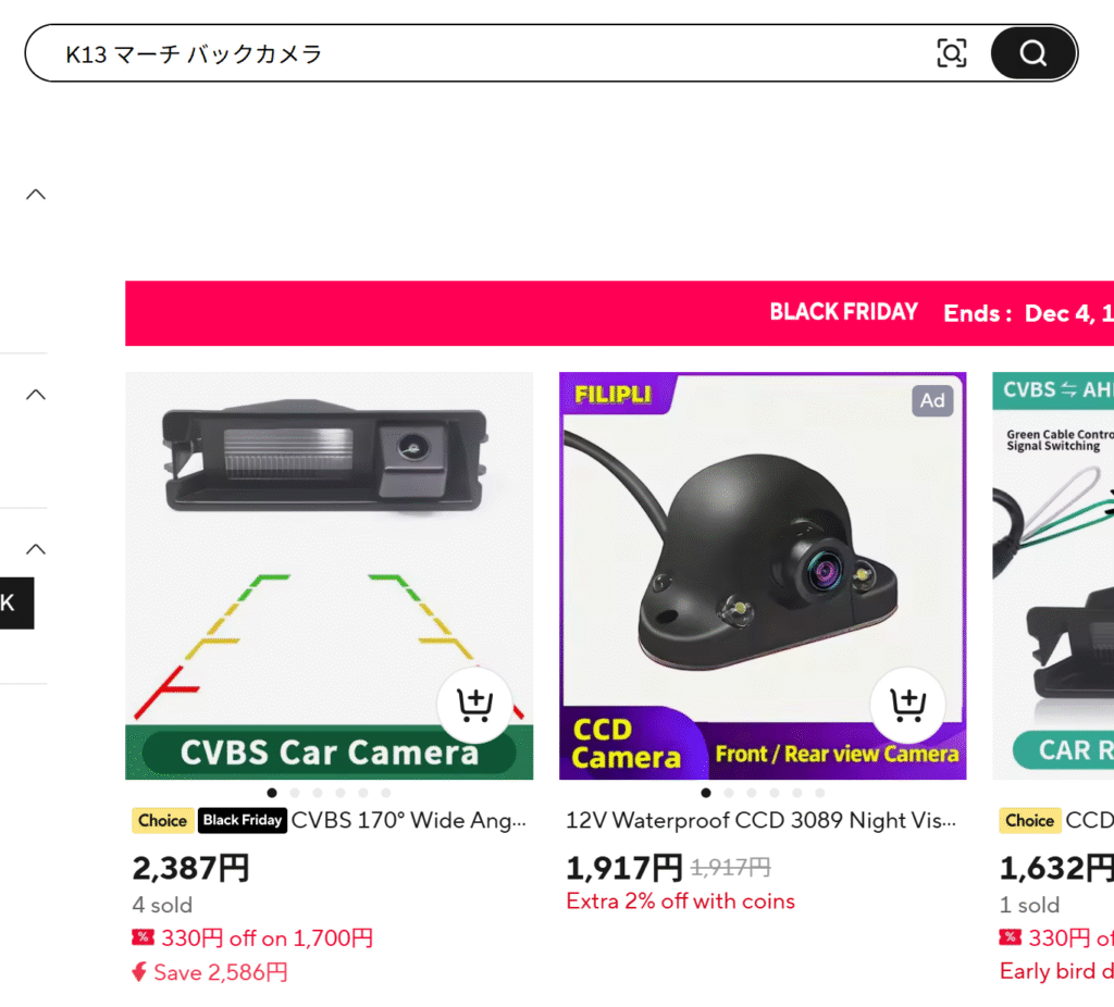 このように車種名を入れて検索すると、商品が出てきやすいです。