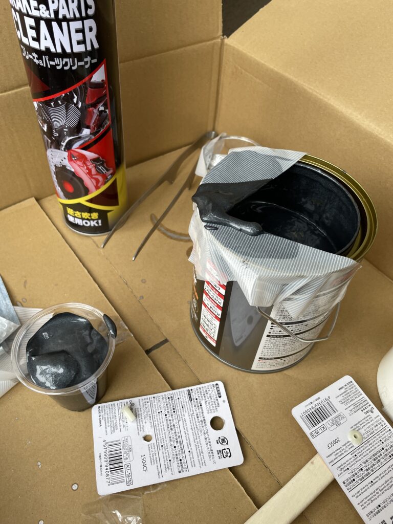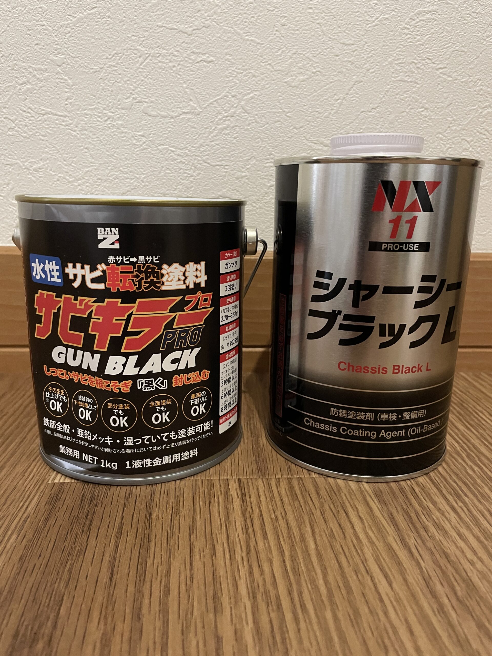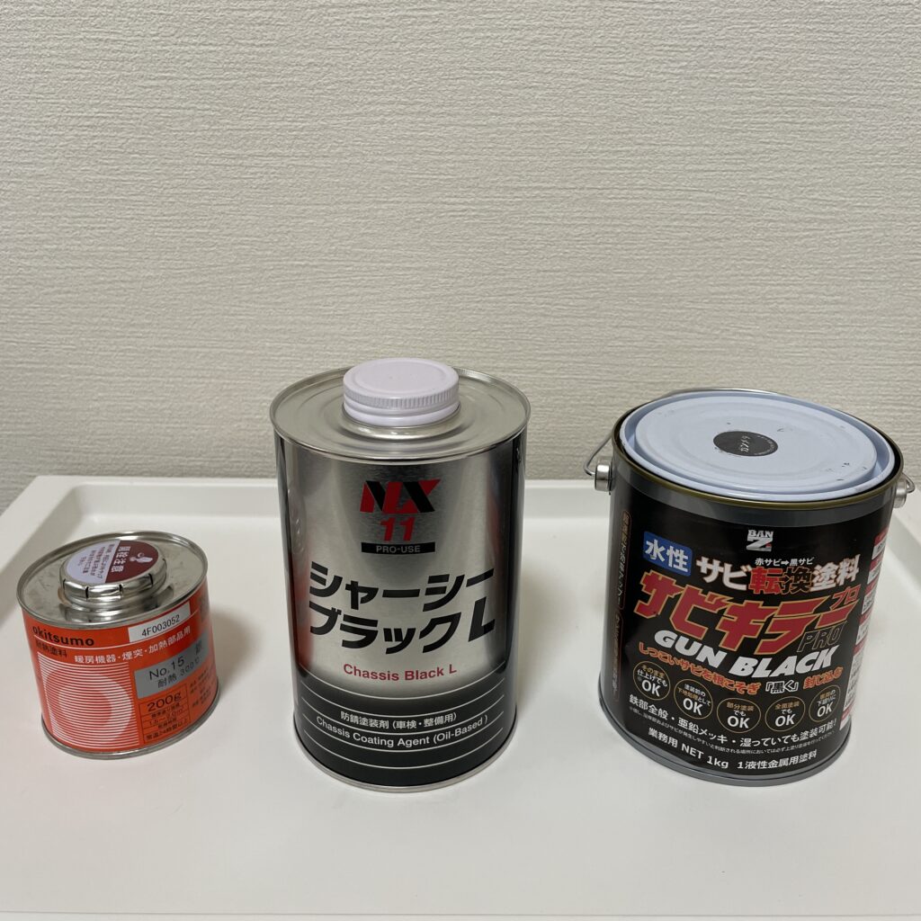 - サビキラープロ(ガンブラック): メインの下塗り・防錆剤。下回りに馴染む黒を選びました。