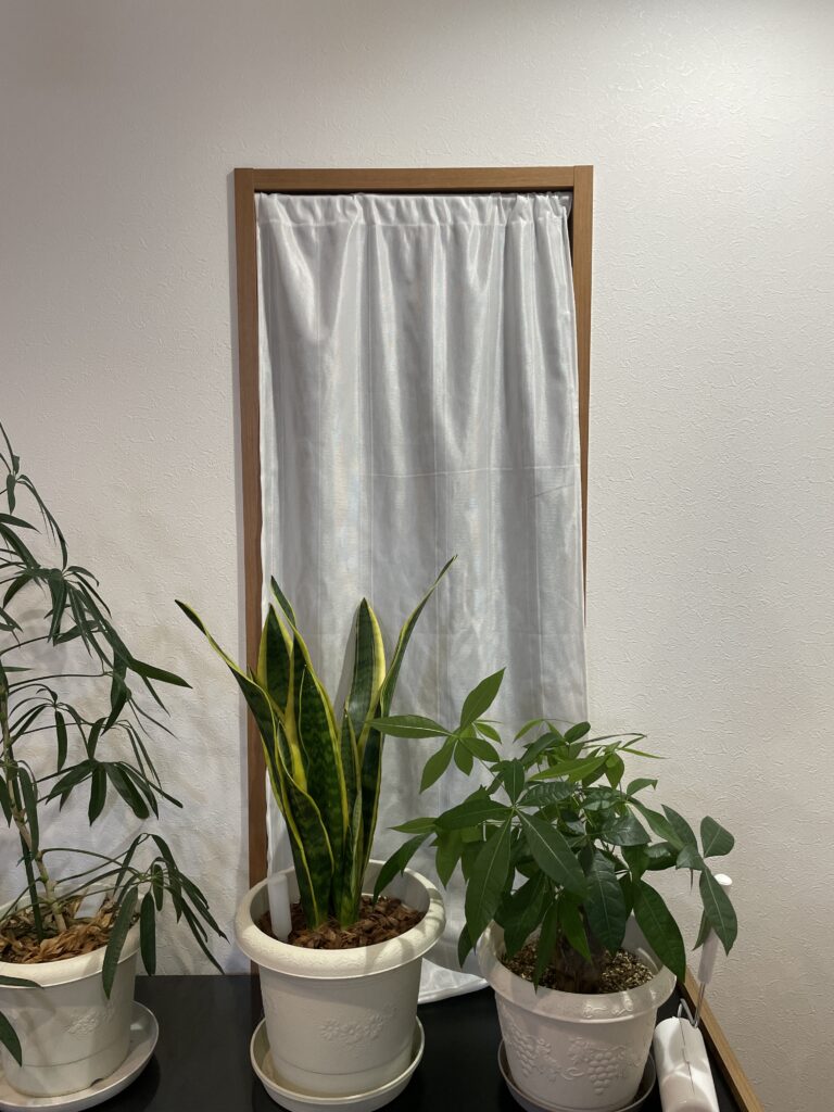 こんな感じでレースカーテンをDIYで縫って、目隠ししていましたが、やはり外からの目線が気になる・・・