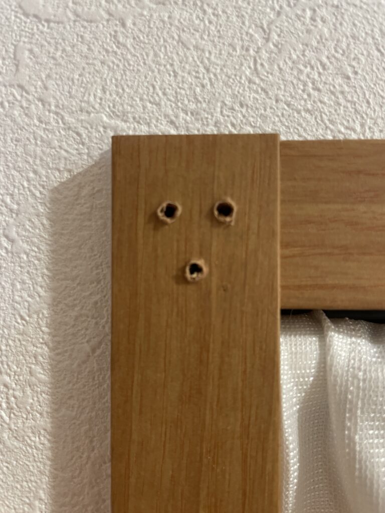 下穴はカーテン取り付けの時に使用したキリを使用しました。