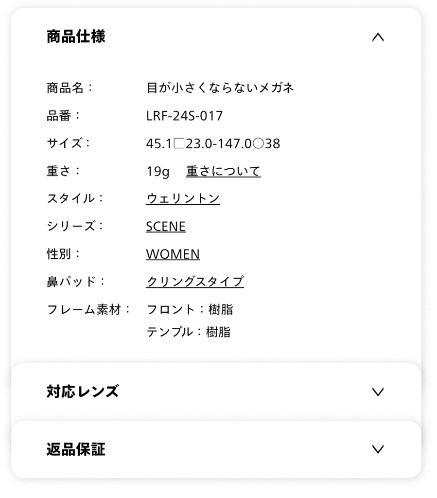 私が購入したのは、「目が小さくならないメガネ LRF-24S-017」