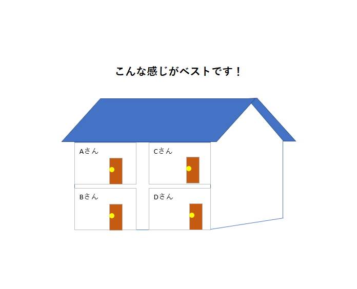 通常は下記の絵のように部屋が横に並んでいる賃貸物件が多いと思います。
