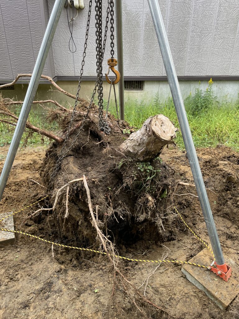 【DIY・素人】チェーンブロックなら幹の太さ20cmクラスの木を抜根できる!【シロアリ対策】